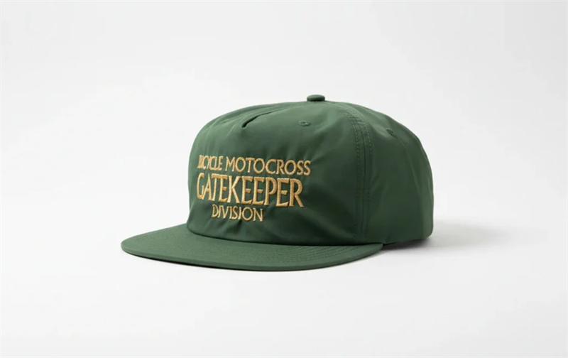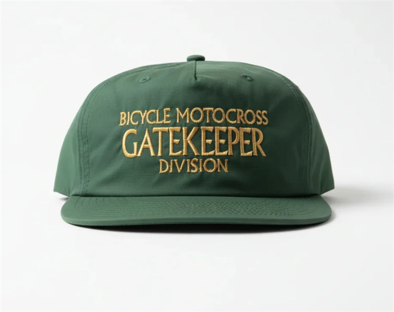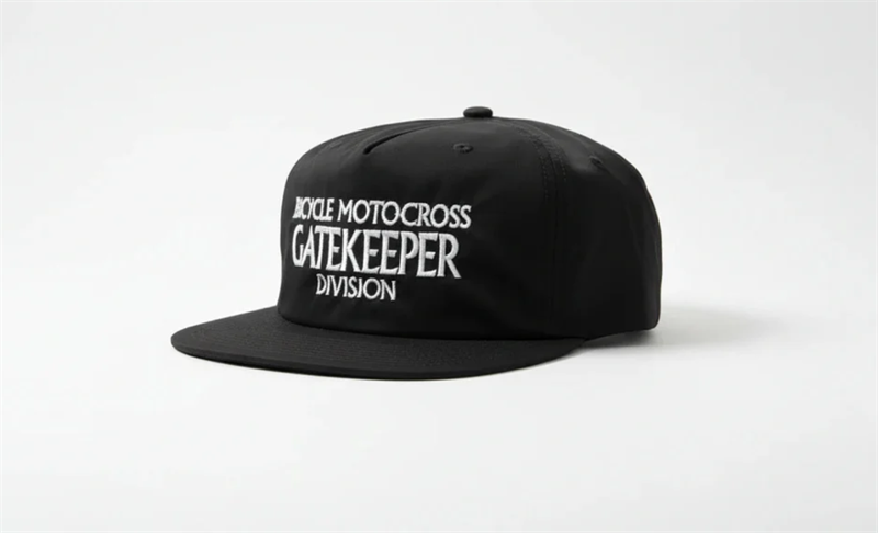 Unstructured lightweight recycled nylon snapbacks that come with Bicycle Motocross Gatekeeper Division embroidered on the front and Buddy MFG embroidered over the snapback on the back